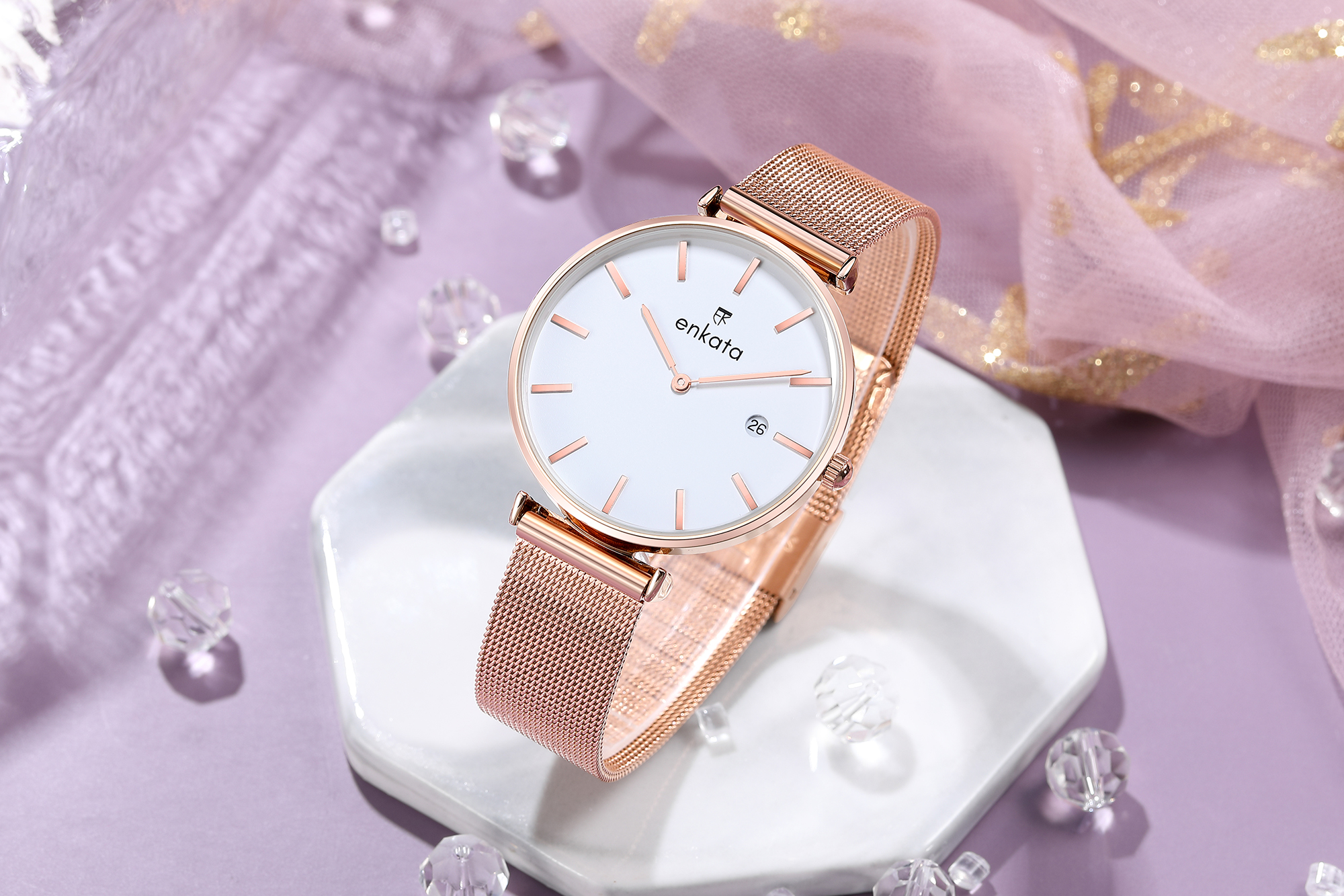 Watch Colour : Rose gold & White